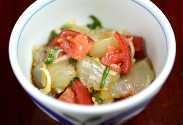 チョウセンバカマのポキ 小型魚なので皮を引くとどうしても切れ端が出る。これをさらに細かく切る。好みの野菜などを合わせて、醤油・ごま油で和える。ねぎは好相性だ。醤油を使っているにも関わらず、ワインやパンに合う。クリックで閉じます![]()