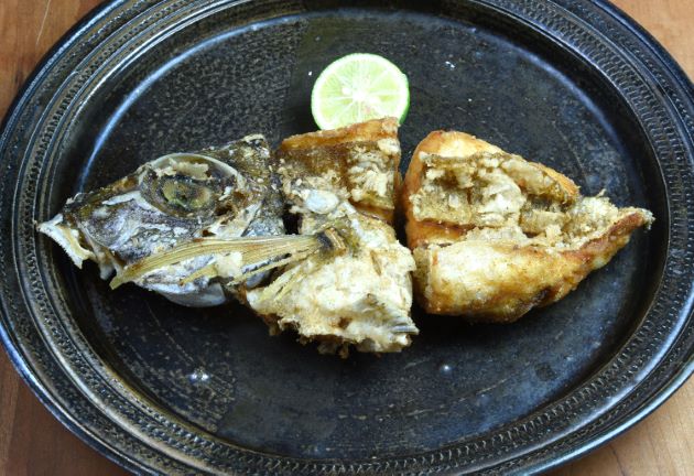 チョウセンバカマの唐揚げ 片身を丸ごと揚げて見た。水洗いして三枚に下ろす。水分をよくきり、片栗粉をまぶしてじっくりと二度揚げする。ふんわりと柔らかく揚がり、中はほどよく繊維質で鶏肉を思わせる。クリックで閉じます![]()