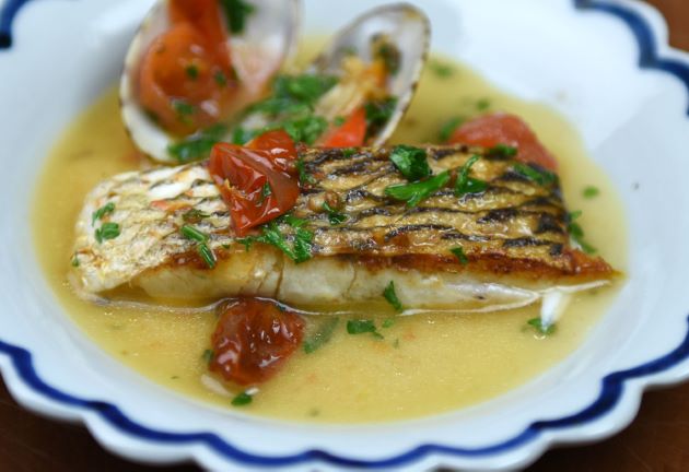 ハマフエフキのアクアパッツァ 切り身でもいいし、丸のままでもいい。水洗いして切り身、もしくは丸のまま塩コショウする。多めのオリーブオイルにつぶしニンニクを入れて火をつけて香りをつけた中でソテーする。火が通ってきたらオリーブオイルと水を足して、アサリを加えて煮上げる。魚だけではなく、アサリのうま味が加わった汁が実にうまい。パンに合う。クリックで閉じます![]()