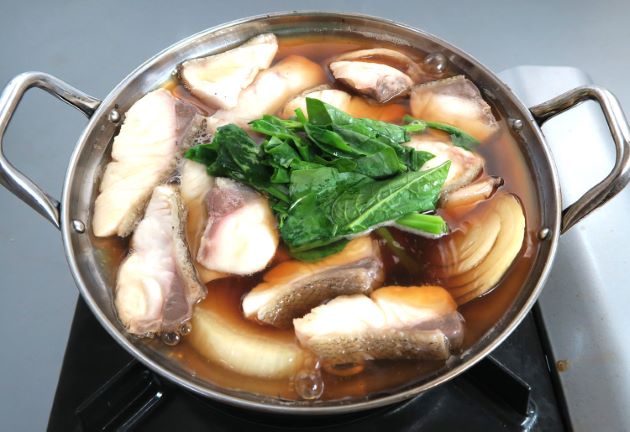 クロアジモドキの煮つけ ここでは頭部(兜)を使ったが、あらでも切身でもなんでもいい。湯通しして、冷水に落として残った鱗やぬめりを流す。水分をよくきり、ここでは酒・みりん・しょうゆ味で煮た。味つけはなんでもいい。お好みで。煮ても身が締まらず、身離れがいい。非常に美味だ。クリックで閉じます![]()