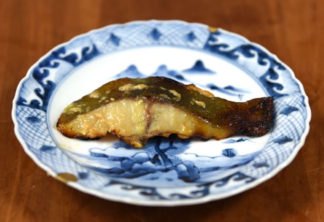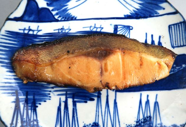 クロアジモドキの粕漬け 切身に振り塩をして1時間以上寝かせる。表面に出て来た水分を拭き取り、熟成させた粕(市販)とみりんを合わせた地につけ込む。甘味に砂糖を使ってもいい。これを焦がさないようにじっくりと焼き上げる。マナガツオに似て漬け魚に最適だ。クリックで閉じます![]()