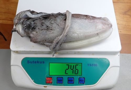 で外套長17cm・246gはまさに秋イカらしいサイズである。