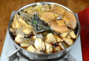 炊飯の用意をした釜につけ込んだ醤油ごと入れて、しょうがのせん切り、少量の酒を加えて炊飯する。