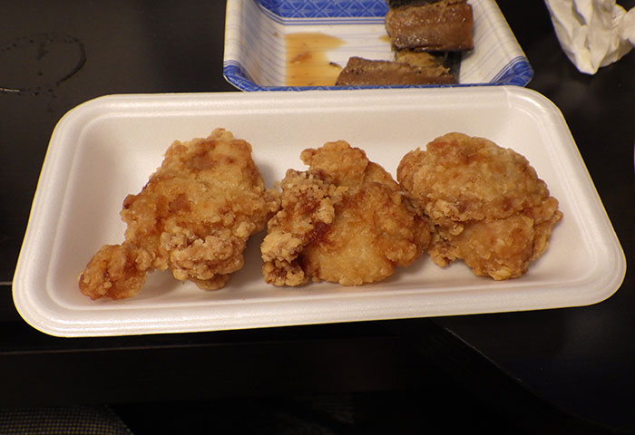 腹の虫をなだめるために、新潟県新潟市西区内野町、スーパー『ichiman』で買った「ふなべたの刺身(タマガンゾウビラメの刺身)」、「身欠きニシン煮」、「鶏の唐揚げ」と、『ブーランジェ・ヨネヤマ』のパンでビール。