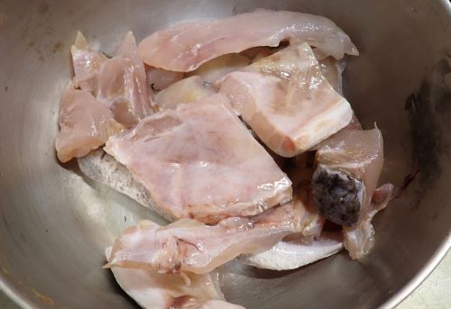 メダイ半身を食べ尽くす、塩漬けで鍋
