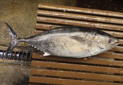 八王子綜合卸売協同組合、舵丸水産に島根県大田市から「めじ(クロマグロの若い個体)」3㎏前後が来ていた。