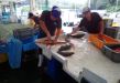 古満目から宿毛市、すくも湾中央市場の競り場に移動する。ここは昼近くまで水揚げが続く、フライト時間があるので見ることができたのはほんの一部だ。今回は同定不能という魚はいなかったが、やはり興奮すること多し。