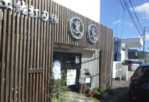 202510/15掲載 コラム水産物・水産生物・食文化を探す旅 高知旅日記6 四万十町、土佐打刃物 黒鳥 シェア ツイート こんなところにこんなに凄い店がある、のが高知のすごさかもクリックで閉じます須崎市を出て、四万十町内に入る。 柴田さんの案内で、『土佐打刃物 黒鳥』をのぞく。 いかにも刃物好きが来そうなところだと思ったら、豈図らんや非常に日常的でいい刃物が揃っている。 これは趣味的なものではなく、ほぼボク好みの包丁たちである。 おおおお、あまりにもボク好み、使いやすそな包丁クリックで閉じますあまりにも切れそうな、使いやすそうな、包丁に喉から手が出そうになる。 ただし今使っている同価格帯の包丁が短くなってからにしたい。 それにしても土佐打刃物は魅力的だ。