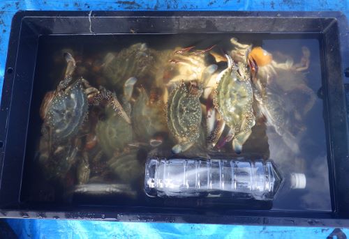 202509/20掲載 コラム水産物・水産生物・食文化を探す旅 新潟市、越後新川、新川漁港で魚貝類を買える、よ シェア ツイート 地元の人は船が帰ってくるのを待っているクリックで閉じます新潟県西区五十嵐新川漁港では朝、水揚げと同時に魚貝類が買える。 まだシステムとして成り立っていないが、新川漁港周辺では評判となっている。 国内各地で同様のことが行われているが、漁船から直接買うので鮮度はこれ以上望めないし、しかも安い。 午前7時から8時過ぎくらいまで、新川漁港で船が帰ってくるのを待っている人たちがいるが、 問題は時間と場所がまちまちであること。 これを解決すれば、新川漁港最大の魅力となるだろう。 ワタリガニも黒バイもすべて生きているクリックで閉じます8月末から9月初めは漁の端境期だった。 それでも大きなワタリガニ(ガザミ)、黒バイ(バイ)だけで魚は少なかった。 寒くなればタコ(ミズダコ)なども揚がる。 生きている水産物が漁師さんから直に買える上に、漁の時に混ざる生き物も見ることができる。 漁師さんとふれ合うことができるのも魅力だろう。 課題はあるけど、新川漁港の魚貝類の魅力は直接買うと、実感できるかも。