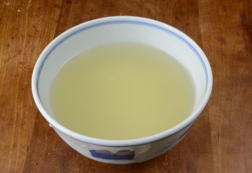 昆布と一緒に一昼夜漬け込んで、火をつけ沸騰し始めたら火をとめて濾す。