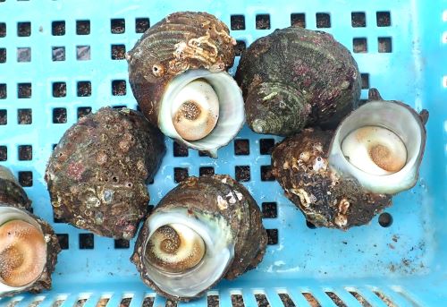 新川漁港近くでとれた立派なサザエは見るだけでお終い