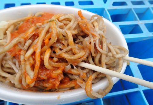 焼きそばの麺が太いのにも意表をつかれる