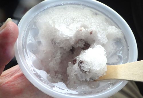 さて、夕闇迫る頃、疲れを取るためにスーパー ichimanの前で地元新潟市のアイスを食べた。