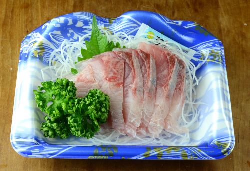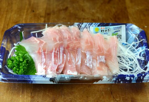 この日の夜飯は新潟市西区内野町『ichiman』で買った鹿児島県産ギンガメアジ(ギンガメアジ)刺身と新潟県産ハチメ(ウスメバル)刺身。