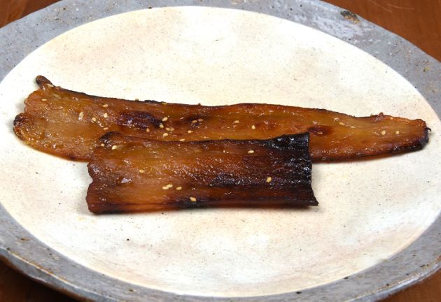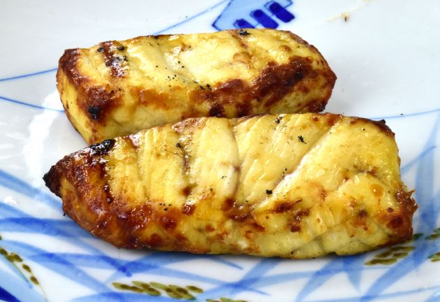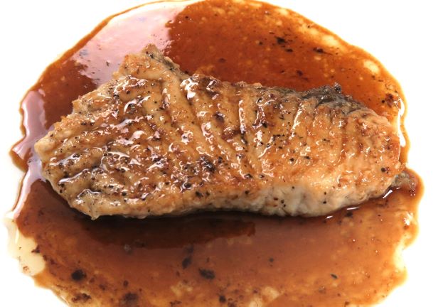 背の部分を切り身にして塩コショウしてソテーする。本体を皿などに取り出し、下ろしニンニク、白ワイン、バルサミコを煮つめてソースをかける。
