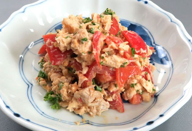 切り身を塩と白ワイン、ローレル、ハーブブイヨンを加えた水でゆでる。そのまま鍋止めにして冷ます。トマト、パセリ、玉ねぎと合わせ、マヨネーズ、トマトケチャップのオーロラソースで和える。