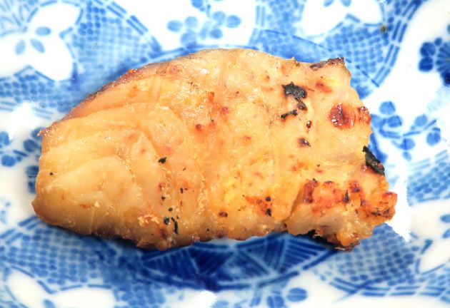 アオザメの煮つけ 腹部を皮つきで、また軟骨周りを煮つけにしたもの。煮つけてしっとりと柔らかい。軟骨周りの身は甘味とうま味がある。また皮下に脂を感じる。クリックで閉じます![]()