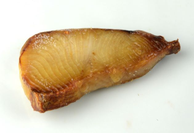 アオザメの塩干し 淡泊で微かに甘みがある中に酸味を伴った苦味が少しだけ感じられる。これがサメ特有のもので、持ち味と言ってもいいだろう。クリックで閉じます![]()