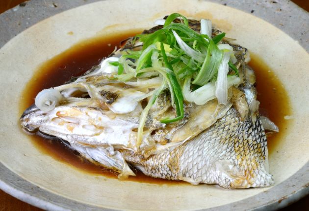 アオバダイの蒸魚(清蒸) 頭部の身の味は体幹部以上に美味である。水洗いして徹底的に鱗を取る。取りにくいところは包丁でこそげ落とす。皿などに入れて酒を振り、強火で15分くらい蒸す。これにタレ(醤油・紹興酒・魚醬・砂糖、好みで八角を合わせて一煮立ちさせたもの)をかけ、ネギなどを乗せて煙が出るほど熱した油をかける。ほの甘いタレに蒸し上がって柔らかくなって上品な身をからめて食べると矢鱈にうまい。ご飯に合う。