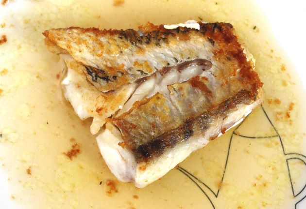 アオバダイの塩焼き 水洗いして大型は三枚に下ろし、中型は二枚下ろしにする。二枚下ろしは骨つきの方を切身にする。振り塩をして1時間以上寝かせてじっくりと焼き上げる。焼いても硬く締まらず、柔らかく出来上がる。皮目の香りがよく、やや淡泊な味わいであるがおいしい。クリックで閉じます![]()