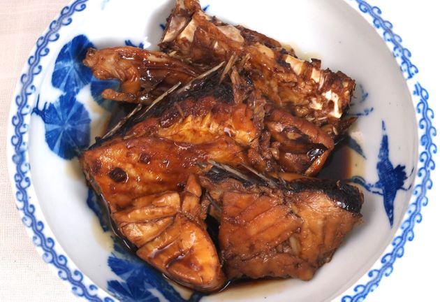 アオバダイのあら煮 台湾の市場で聞いた料理法で唯一聞き取れたのが、日本語の煮つけだ。中国醤油で煮るのだとは思うが、ここではたまり醤油と濃い口醤油を使った。あらを適当に切り、湯通しして冷水に落として残った鱗とぬめりを流す。水・砂糖・酒・濃い口醤油・たまり醤油を煮立てたなかで煮る。淡泊な味わいなので、強めの味付けにするとご飯に合う。クリックで閉じます![]()
