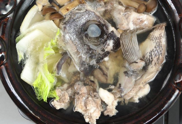 アオバダイのちり鍋 水洗いして刺身やソテーにして出たあらを集めて置き、大きめの部分は適当に切る。湯通しして冷水に落として残った鱗やぬめりを流す。水に昆布を入れて出しを取る。酒・塩で味つけしたつゆで煮ながら食べる。いいだしが出て、身離れがよく身に甘みがある。クリックで閉じます![]()
