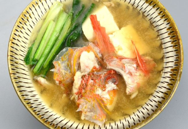 イズハナダイのみそ汁 沖縄ではこの鮮魚のみそ汁が郷土料理となっている。材料が少なくてすみ、その上、豪華な味わいになる。あらなどを集めて置く。小型なら水洗いしてぶつ切りに。湯通しして冷水に落として残った鱗とぬめりを流す。水分をよくきり水から煮出してみそを溶く。実に味わい深く、あらなどに付着している皮や身もうまい。クリックで閉じます![]()