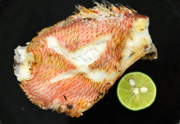 イズハナダイの塩焼き 水洗いして二枚に下ろす。骨つきの方に振り塩をする。1時間以上寝かせてじっくり焼き上げる。水なしで熱を通すと少し硬く締まるが、皮目に独特の風味があり、見に甘みがある。クリックで閉じます![]()