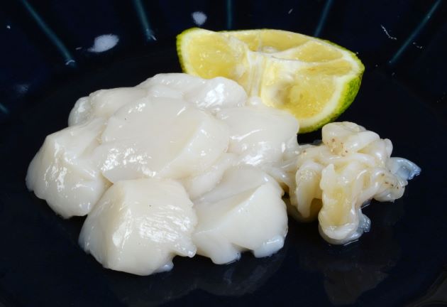 ホタテガイよりも貝柱は小さく、白い。うま味豊かで甘く、しかも後味がいい。イタヤガイ科の中でも最高峰のひとつ。