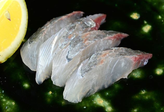 水洗いして三枚に下ろす。腹骨を取り、腹側・背側に分けて血合い骨を取る。皮を引いて刺身状に切る。