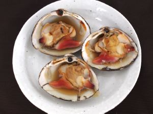 ホッキガイの焼き貝(ウバガイの焼き貝) 剥き身にして一度貝から外してていねいに塩水のなかで、砂などを流す。片方の貝殻に乗せて強火で焼き上げる。仕上げに醤油・酒を合わせたものを加える。クリックで閉じます![]()