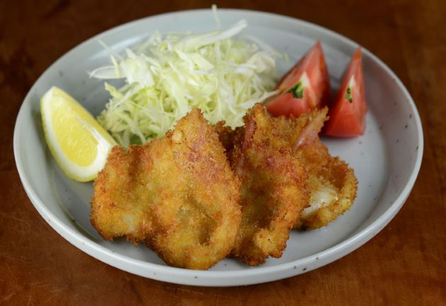 ホッキガイのフライ(ウバガイのフライ) 足の部分を開いて湯通しして冷水に落とす。粗熱をとり、水分をよくとる。塩コショウして小麦粉をまぶして衣(小麦粉・卵・水)をからめてパン粉をつけてやや高めの温度で揚げる。揚げすぎると硬くなる。クリックで閉じます![]()