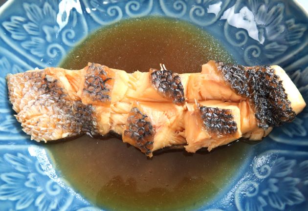 オキナメジナのしょうゆ煮 今回は切り身を使ったが頭部でもあらでもなんでもいい。湯通しして、冷水に落として残った鱗やぬめりを洗い流す。これを酒、砂糖、しょうゆの味つけで煮る。煮ると硬く締まってしまい、口のなかでのほぐれ感が楽しめない。イマイチの味である。少量の煮汁で煮る場合には工夫がいるかも。クリックで閉じます![]()
