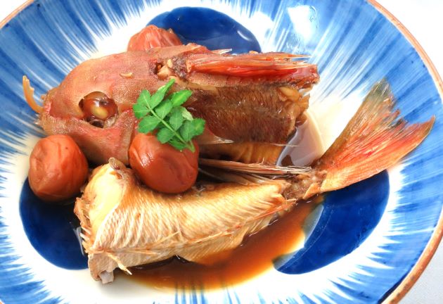 カナガシラの煮つけ 大振りのカナガシラを水洗いして半割にして肝などはそのままにして、湯通しする。水分をよくきり、煮たもの。酒・砂糖・しょうゆの味つけで臭味消しには梅干しを使ってみた。これは三重県尾鷲市でのやり方。酒・みりん・しょうゆでも、酒・しょうゆ味で煮てもおいしい。クリックで閉じます![]()