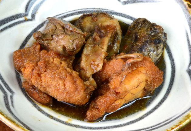 水洗いして適当に切る。肝や鳴き袋も取り分けて置く。湯通しして冷水に落として残った鱗とぬめりを流す。水分をよく切っておく。これを昆布・酒・塩の出しの中で煮ながら食べる。野菜や豆腐などはあるものをたっぷり使うといい。