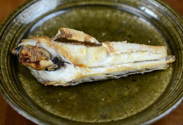 カナガシラの塩焼き 水洗いする。頭部は一般家庭では切り捨てた方が焼きやすい。鰾、肝を取り出しておき、必ずもとに戻して焼いて欲しい。振り塩をして1時間以上寝かせて焼き上げる。焼きものの味わいは一級品。皮目には独特の香りがあり、身は適度に繊維質で身離れがいい。ほんのりとした甘味もいい。しかも腹にもどした鰾、肝の味わいは例えようもない。クリックで閉じます![]()