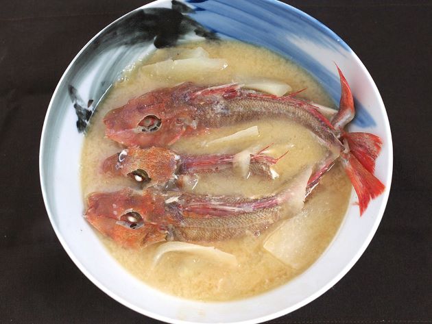 カナガシラのみそ汁 1尾丸ごと使っても、あらを使ってもいい。必ず肝もくわえること。これを一度湯通しして、冷水に落としてぬめり、鱗などを流す。これを水から煮出してみそをとく。豆腐や野菜などをくわえてもいい。実にうま味豊かなだしが出て非常においしい。クリックで閉じます![]()