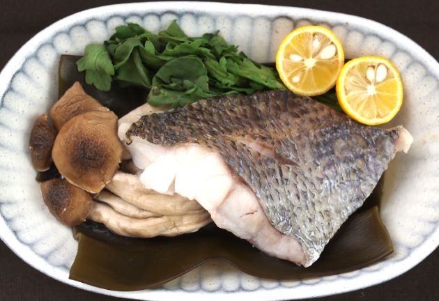 水洗いして三枚に下ろす。切り身にして昆布を敷ききのこなどを添えて酒を振って10分弱蒸す。終いに青みを加える。