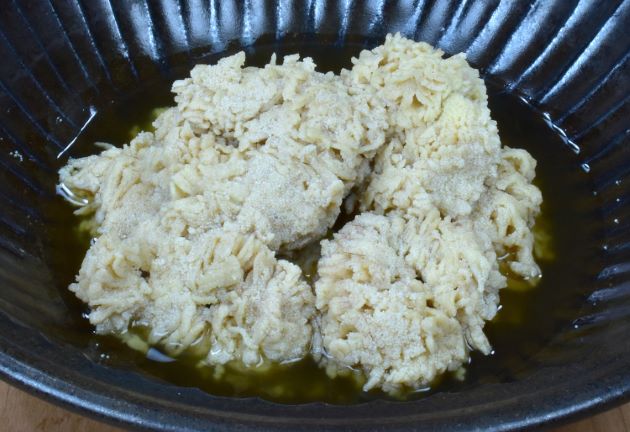 水洗いして三枚に下ろし、切り身にする。振り塩をして少し置き、表面に出て来た水分を拭き取る。これを酒・みりん・醤油同割りの地に半日程度漬け込む。