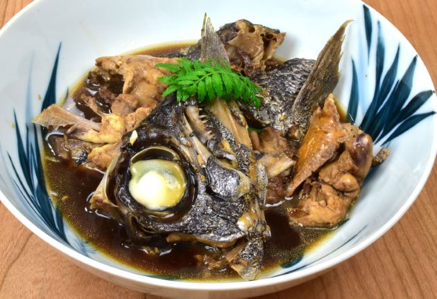 刺身や塩焼きなどにした残りの頭部、胃袋、中骨などを取り分けて置く。湯通しして残った鱗やぬめりを流す。水分をよくきり、酒・砂糖・醤油・水で煮る。