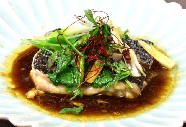 水洗いして二枚に下ろす。骨つきの方を切り身にする。皿に盛って日本酒を振り、10分ほど蒸す。中国の甘い醤油・魚醬・紹興酒・砂糖を煮立たせたたれをかける。上に香りのある野菜をのせて煙が出るくらい熱した油をかける。