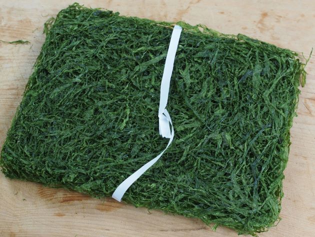 一般に乾物で流通。青味の強いもの。黒っぽいものや退色しているものはダメ。味わい