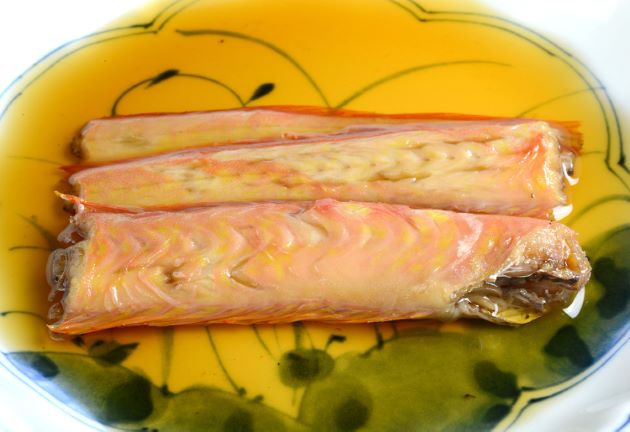 料理の方向性非常に細長く筋肉胃部分が薄い。刺身にするなら皮目を生かして皮霜造りか焼霜造りが向く。煮る、汁の液体を使った料理法は骨以外無駄なく食べられる。揚げてもおいしいと思う。軽く干して焼くと風味がいい。栄養