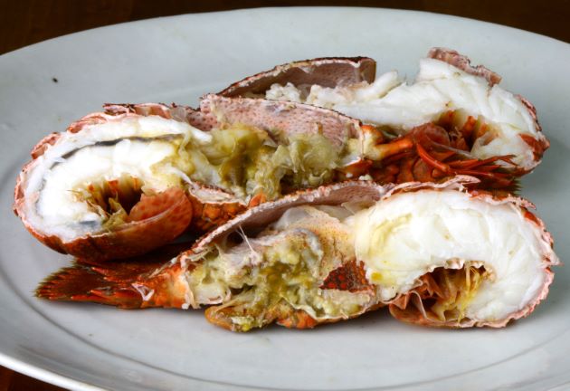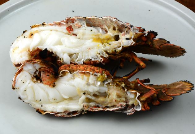 焼きゾウリエビ ゆでるのと焼いたのでは焼いた方が身が締まり、うま味も増す。ただし本種の身自体の味をしっかり味わいたいならゆでる方が優るかも。要するに好みの問題だろう。網の上で強火で焼き上げて、赤く染まったら今度は上火でじっくり時間をかけて焼き上げる。クリックで閉じます![]()