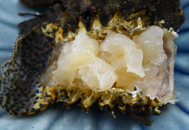 殻は硬い。棘などもあり、生きているものを外すときには注意が必要。