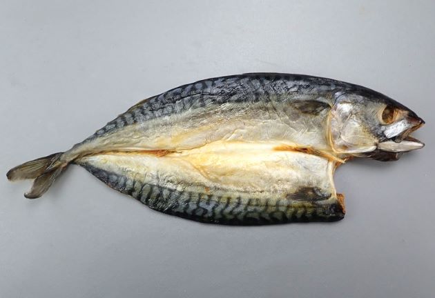 サバの文化干し 〈終戦の5年目だが、「軍が開発し使用していたとかの乾燥材を所有していた方が、『魚を干すのに使えないか?』と持って来られた。何から造られたか知らぬ『軽い砂』である。この『乾燥砂』の中に魚を埋めて置くと、『干もの』になると言う。魚をそのまま埋めると砂まみれになるので、セロハン紙に挟んで埋めて置くのだと説明された。セロハンなどの紙に包めば、むれる心配があると言ったら、『セロハン紙は、水は漏らぬがメッシュの小さな穴があるので、空気は通る』と説明された。さっそく中型のサバで実験してみる。開いた鯖の塩水漬けを終わって砂の中で一昼夜もたつと、確かに水分50パーセント位に乾燥していて『中干しの干鯖』はできた。干しあがった製品は、日干したものより、色・艶が悪いばかりでなく、血合いはどす黒さが目立つ」、「千葉県勝浦の生産者のひとりK氏が「1、鯖を二枚におろして、乾燥砂で乾燥させる。2、セロハンに包んだままの出荷」をしてきた。この簡単な改良が成功であって、販路を大きく拡張することになった。半身の干鯖のセロハン包みである。これに「文化干し」と名を付されたが、この名もK氏の創始ではなかろうか。〉。文化干しは古くはマサバで作られていたが、近年ではほとんどがタイセイヨウサバで作られている。塩乾業者はタイセイヨウサバの方が安定してうまいという。『干もの塩もの』(石黒正吉 毎日新聞社)参考文献・協力