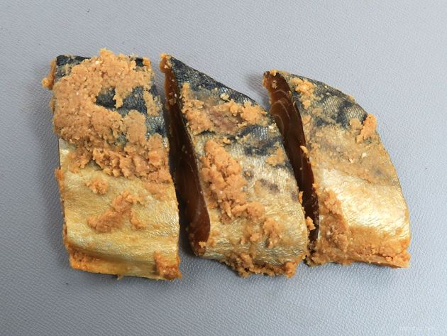 さばのぬかみそ炊き 福岡県北九州市周辺。マサバの切り身を糠味噌(ぬかみそ ぬか漬けの糠)、しょうゆ、砂糖、みりんなどと煮たもの。マイワシでも作る。加工品・名産品