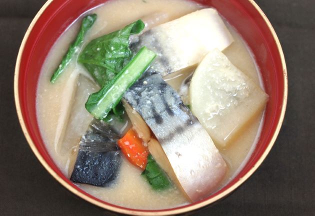 タイセイヨウサバの粕汁(かすじる) 大阪などでは塩さばや生のものを使って粕汁を作る。塩サバでも冷凍サバでも、生でもなんでもいい。三枚に下ろし適当に切る。湯通しして冷水に落として表面のぬめりを流す。昆布だし、もしくはカツオ節出しで野菜とサバをにて、仕上げに酒粕・少量の醤油か塩を加える。クリックで閉じます![]()