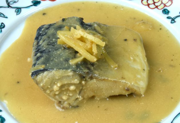 タイセイヨウサバのみそ煮 冷凍ものは解凍して三枚に下ろす。適当に切り、湯通しして冷水に落として表面の滑りを流す。水分をよく切り、酒・砂糖・水を煮立てた中で煮る。火が通ったら濾したみそを加えて水分が少なくなるまで煮る。煮ても硬くならず、ふんわりして柔らかい。脂の多さがこくとなり、非常に美味。クリックで閉じます![]()