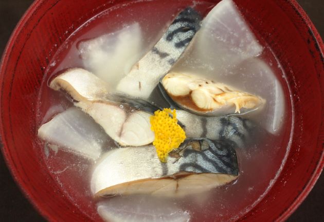タイセイヨウサバの船場汁 冷凍サバは下ろして、塩さばを適宜に切り、湯通しする。冷水に落としてぬめりを流し、水分をきる。これを水から煮出し、酒・塩もしくは醤油で味つけする。大阪道修町の商家で作られていたもので、単純に塩サバだけで作っていたのだと思うが、昆布だしや酒を使った方が美味しい。クリックで閉じます![]()